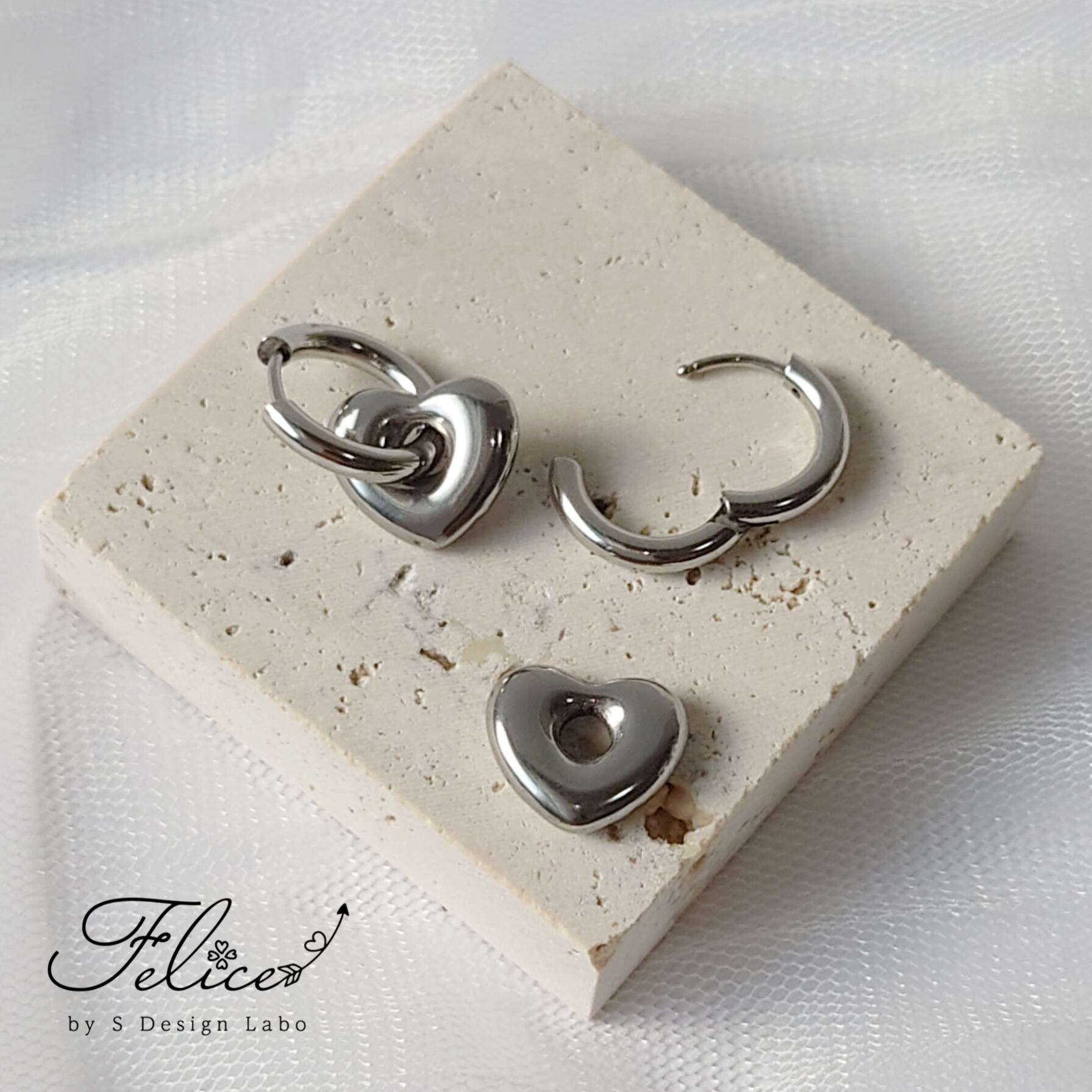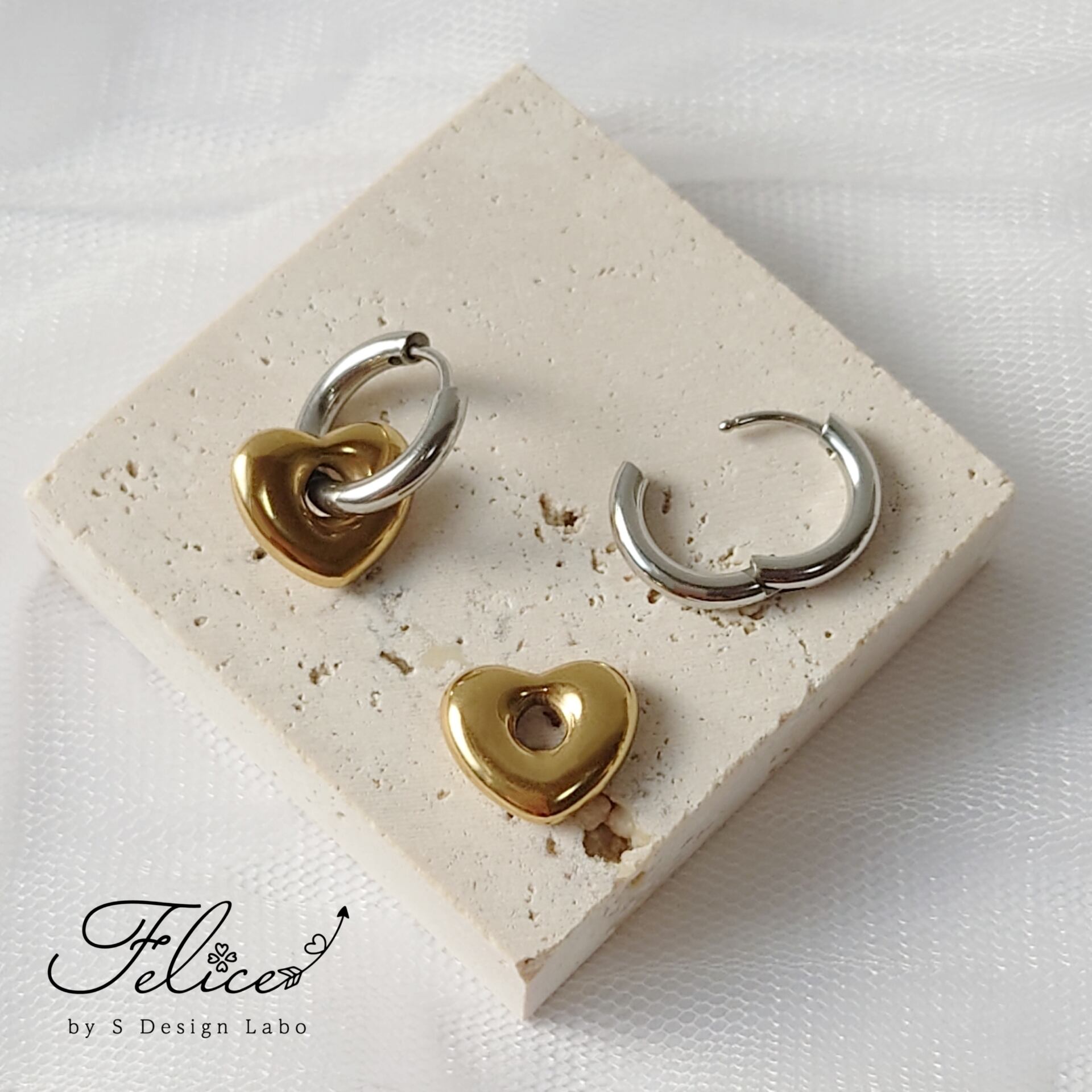 Heart Hoop 2way pierce 【 ニュアンスハート フープピアス 】ステンレス を心より楽しんでいただけますように♡