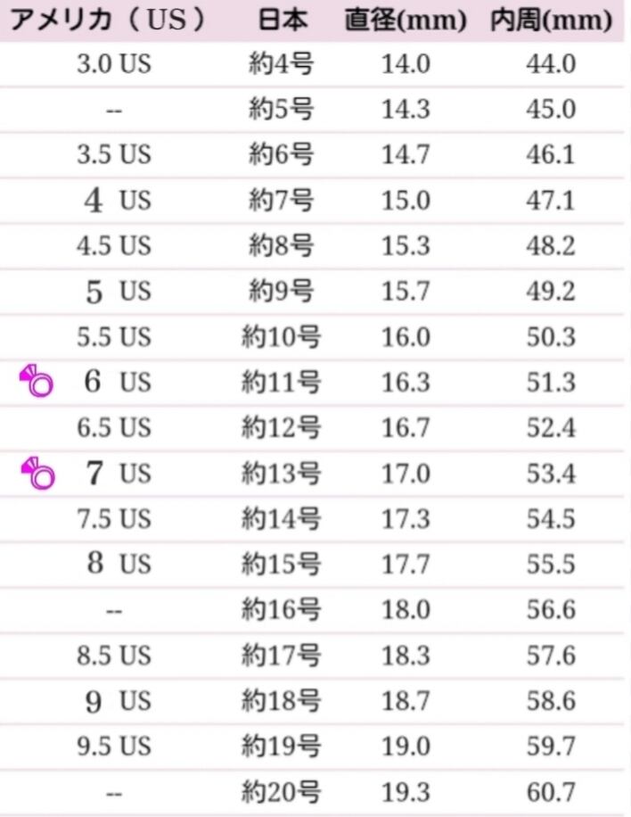 ※幅が広いリングは接地面が広くなり普段お使いの号数よりもワンサイズUPするのがオススメですので、内側直径をご参考にご検討お願いいたします。