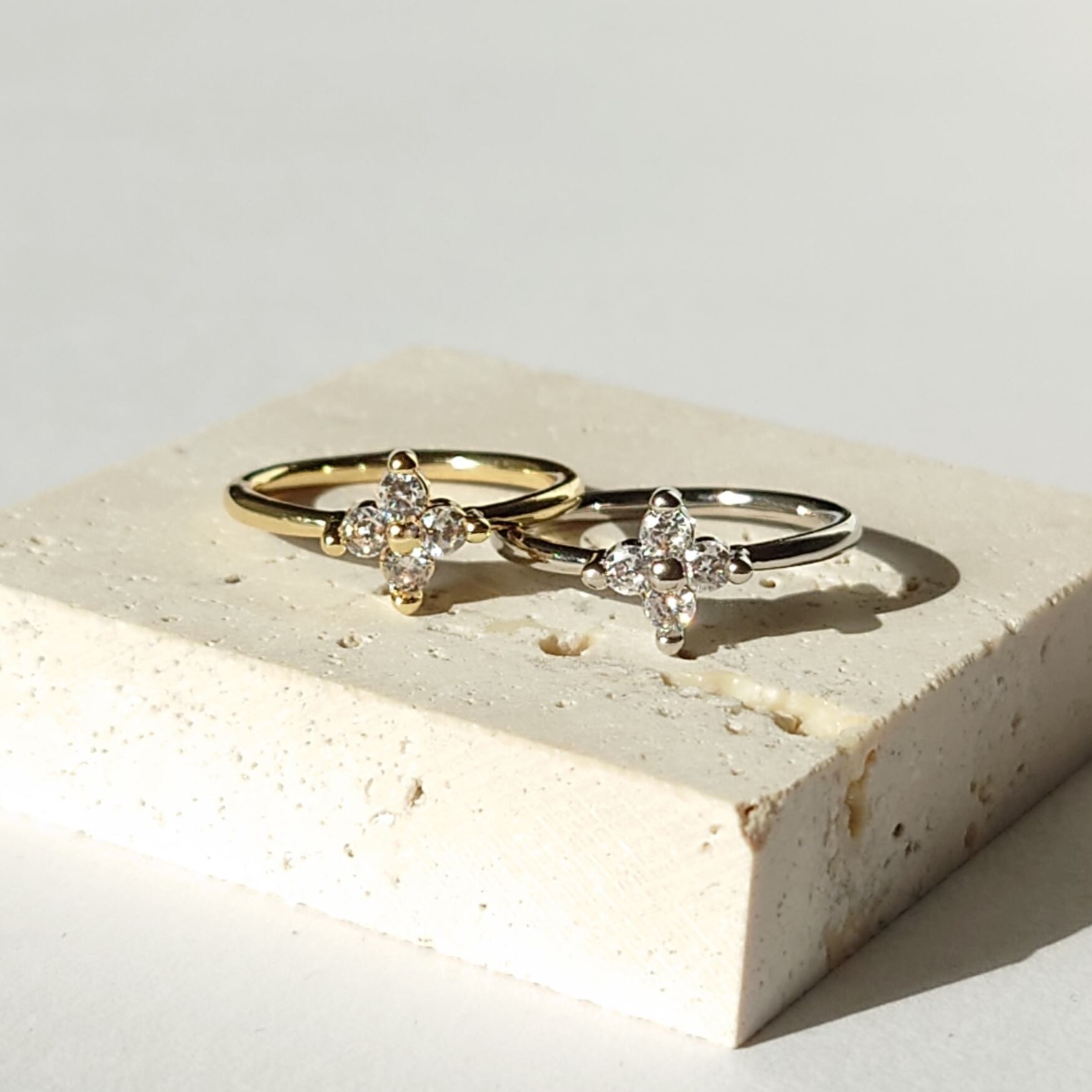 flower motif zirconia ring 【 フラワージルコニアリング 】ステンレス製 指輪 CZダイヤ 金属アレルギー対応 つけっぱなしOK サージカルステンレス レディース 華奢 大人可愛い シルバー ゴールド 花モチーフ 重ね付け