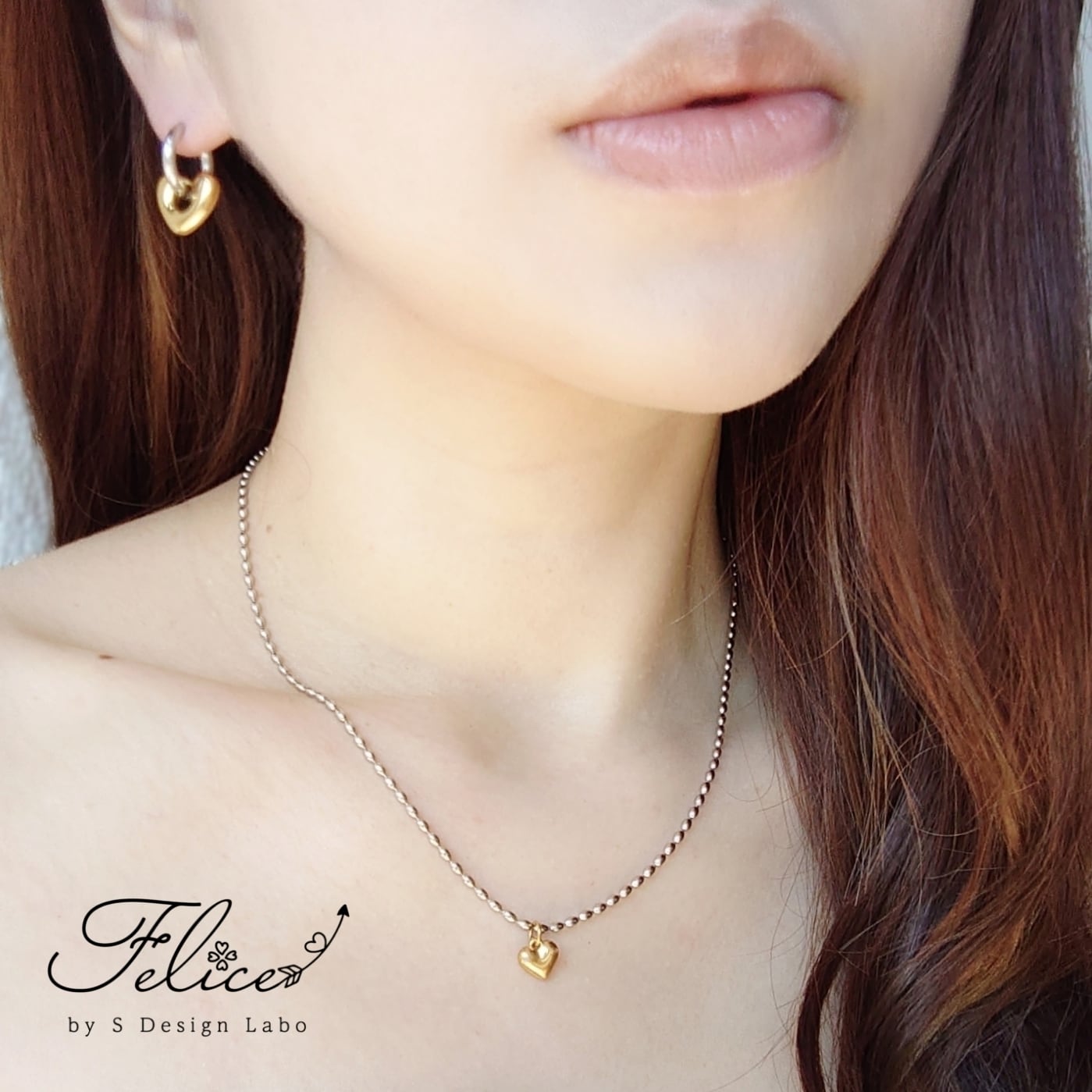 ゴールドの立体ハートチャームとシルバーカラーのボールチェーンの組み合わせが、胸元に大人可愛いアクセントをプラスします。