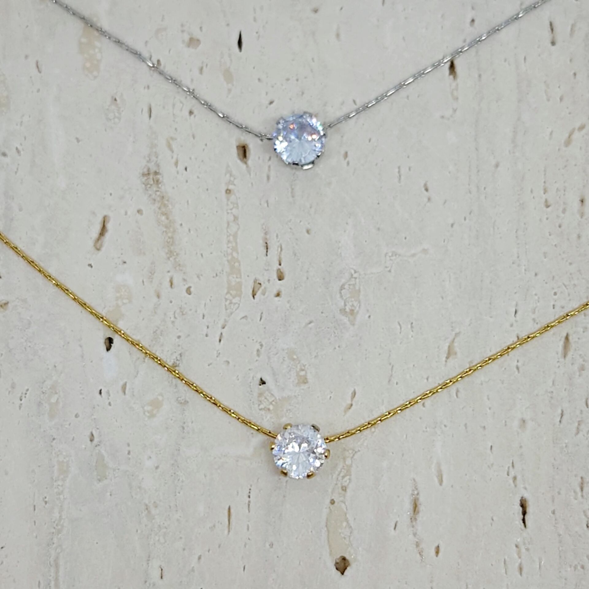 【一粒ジルコニア ネックレス 5mm】ステンレス製 金属アレルギー対応 つけっぱなしOK シンプル 重ね付けおすすめ シルバー / ゴールド