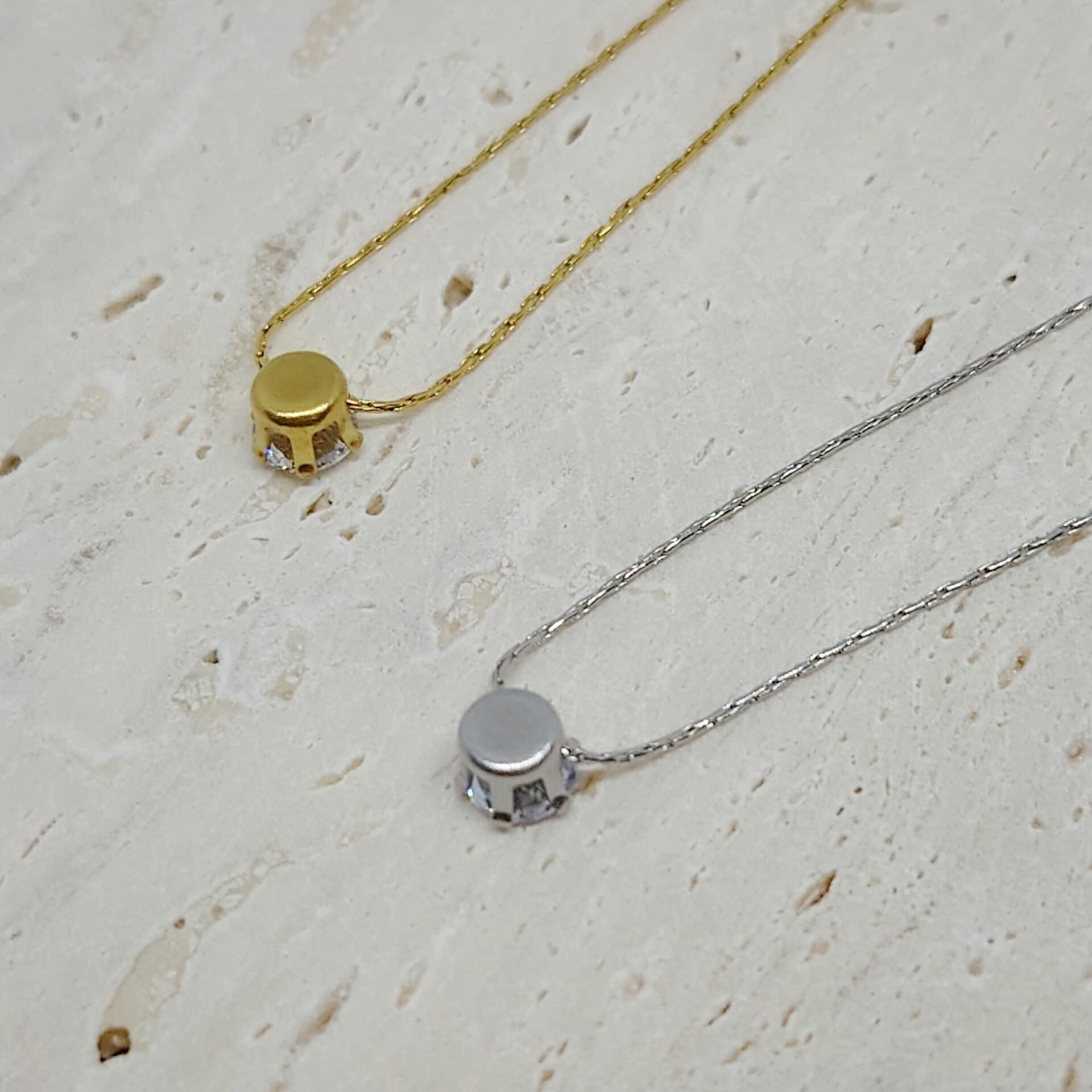 存在感のある5mmサイズの一粒ジルコニアを胸元にあしらった、上品で洗練されたデザイン。